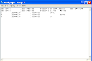 Ahora despues de tantas palabras huecas, vamos a realizar nuestro ejercicio. Primero vamos hacer la carga de nuestro extracto bancarios, que son layout's que nos entregan los bancos con los movimientos del banco en un rango de fechas. Estos layout's tienen que cargarse por DTW con el template "oBankPages", recuerden que estos layout's varían por cada banco, así que aquí pueden pensar en un agente o servicio que les pudiera generar su template "oBankPages". En nuestro ejemplo del template "oBankPages" yo use la mínima cantidad de columnas que son: