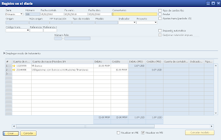Como ven nos aparece la pantalla de asientos contables, por que SAP Business One no sabe a que contrapartida hará el asiento, así que nosotros tendremos que hacer ese trabajo de mapeo a las cuentas que le corresponden